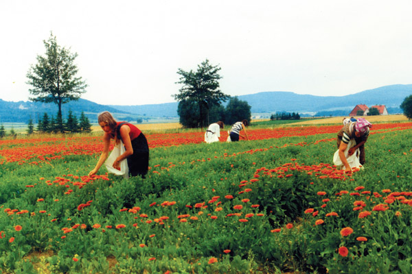 Unsere Ansprüche aber waren höher und die Qualität der damaligen Lieferanten genügte uns nicht, sodass wir uns dazu entschlossen, selber heimische Kräuter und Pflanzen, wie Kamille und Ringelblume, anzubauen. Auf Reisen in Länder wie Sri Lanka, Indien und Frankreich fand ich viele Inspirationen und suchte nach neuen Rohstoffen, ätherischen Ölen und Bio-Extrakten. So fand ich beispielsweise in Marseille Henna-Pulver für unsere Pflanzen-Haarfarben und lernte dort, Kräuter-Extraktionsanlagen einzusetzen.