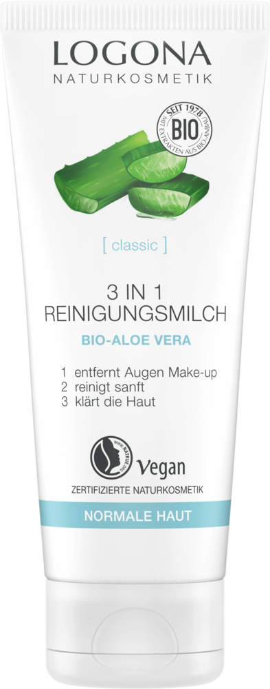Die LOGONA 3 IN 1 REINIGUNGSMILCH reinigt gründlich und versorgt die Haut schon während der Reinigung mit wertvoller Feuchtigkeit. Die effektive, vegane Formulierung natürlichen Ursprungs mit Bio-Aloe Vera und milden Waschsubstanzen löst Make-up und Schmutz. Die zarte Milch verfeinert die Poren und bietet eine optimale Vorbereitung auf die nachfolgende Pflege. Auch für Kontaktlinsenträger/innen geeignet.