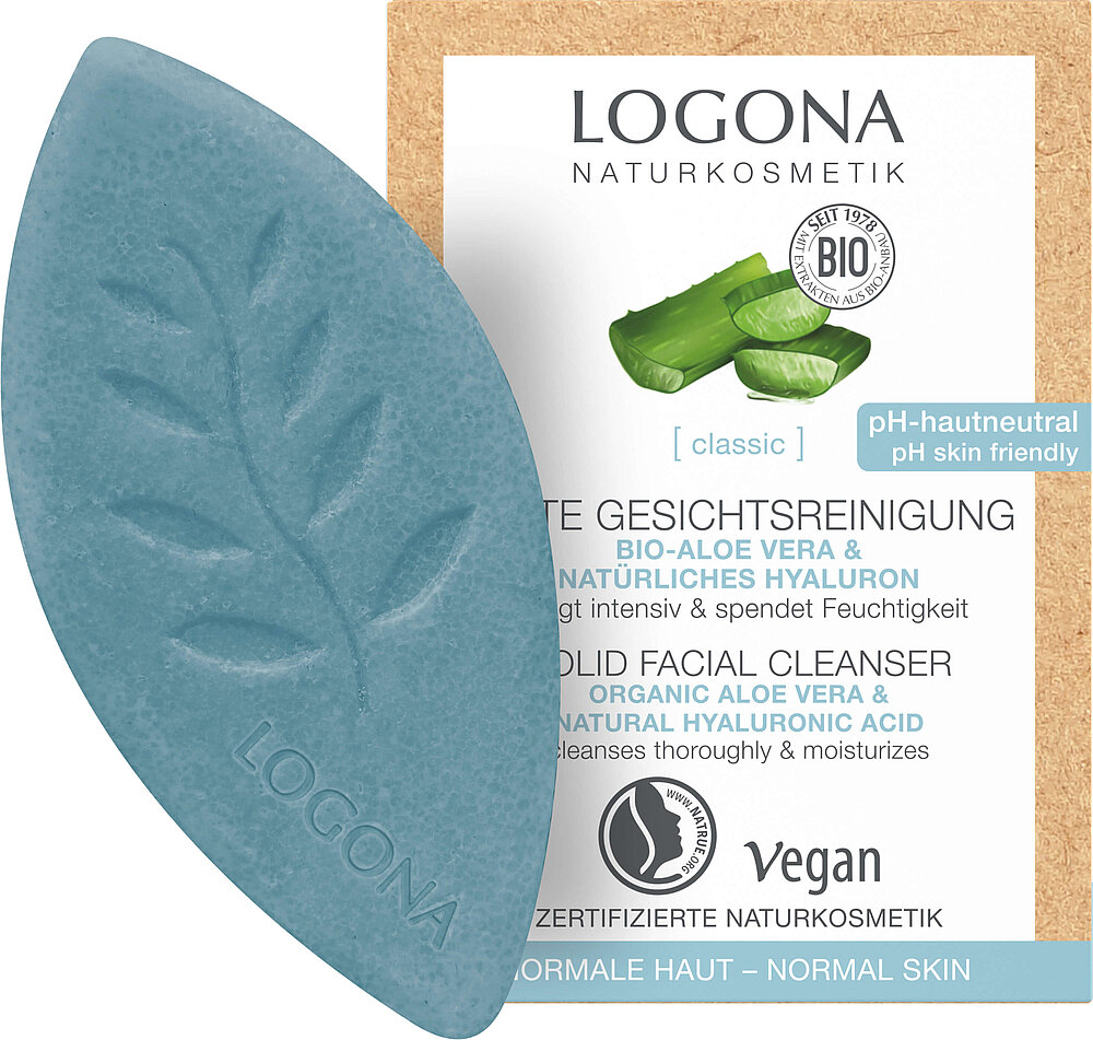 Die LOGONA FESTE GESICHTSREINIGUNG reinigt die Haut seifenfrei ohne auszutrocknen und versorgt sie mit wertvoller Feuchtigkeit. Die pH-hautfreundliche, vegane Formulierung mit natürlichen Extrakten, Bio-Aloe Vera und natürlichem Hyaluron löst Schmutzpartikel & Make-up für ein sauberes, angenehm erfrischtes Hautgefühl.