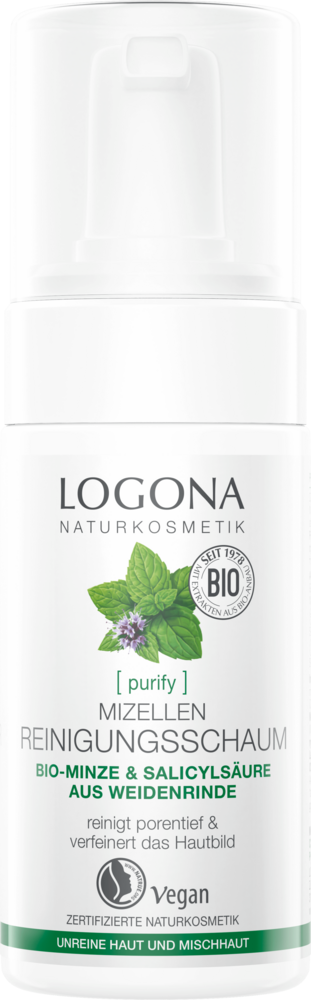 Der LOGONA MIZELLEN REINIGUNGSSCHAUM mit innovativer Mizellentechnologie nimmt Make-up und Schmutz besonders sanft von der Haut und sorgt für eine porentiefe Reinigung. Die effektive, vegane Formulierung natürlichen Ursprungs mit Bio-Minze & natürlicher Salicylsäure aus der Weidenrinde reduziert den Hautglanz und sorgt langfristig für ein verfeinertes Hautbild.