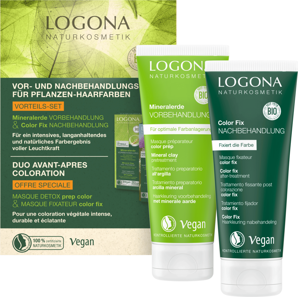 LOGONA Vor- und Nachbehandlungs-Set für Pflanzen-Haarfarben für kurze Zeit zum Vorteilspreis.
